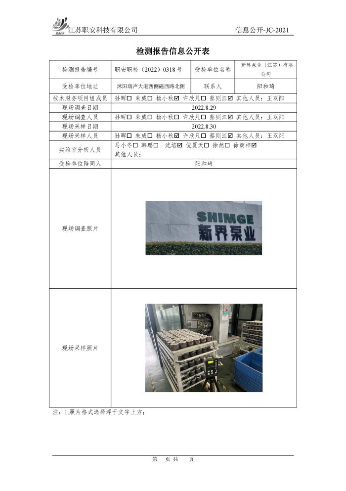 檢測報告公示