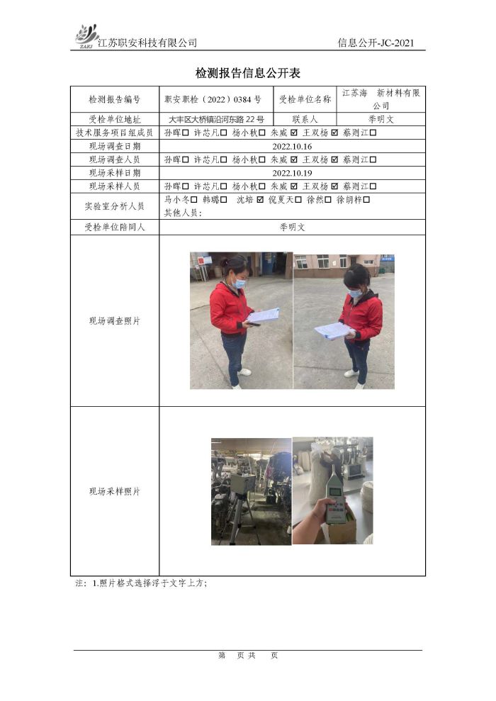 檢測報告公示