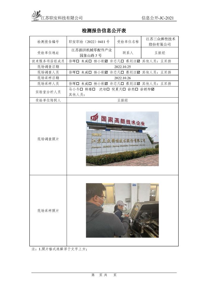 檢測報告公示