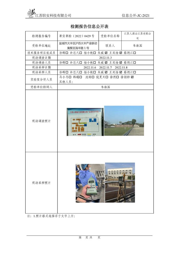 檢測報告公示