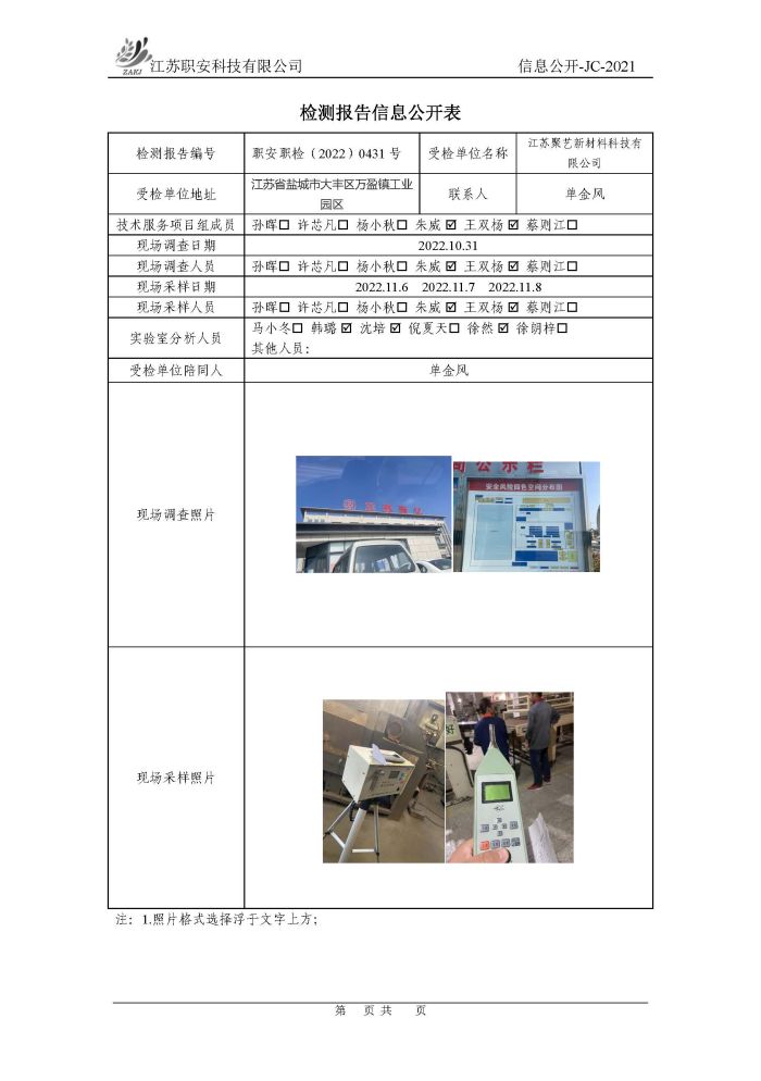 檢測報告公示