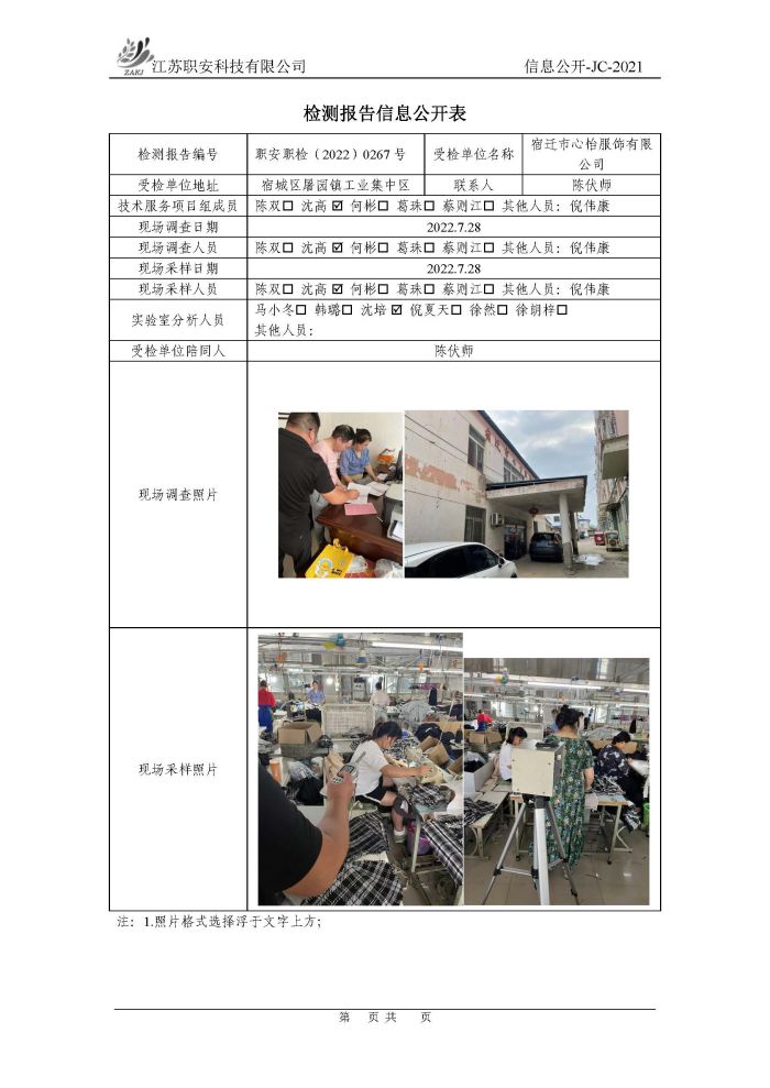 檢測報告公示