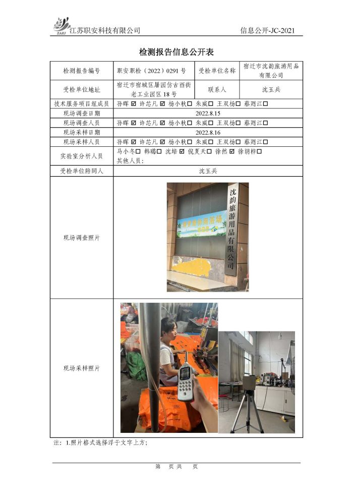 檢測報告公示