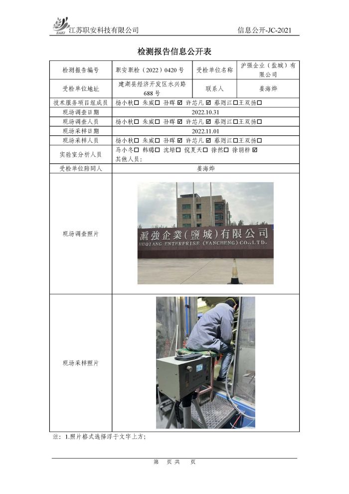 檢測報告公示