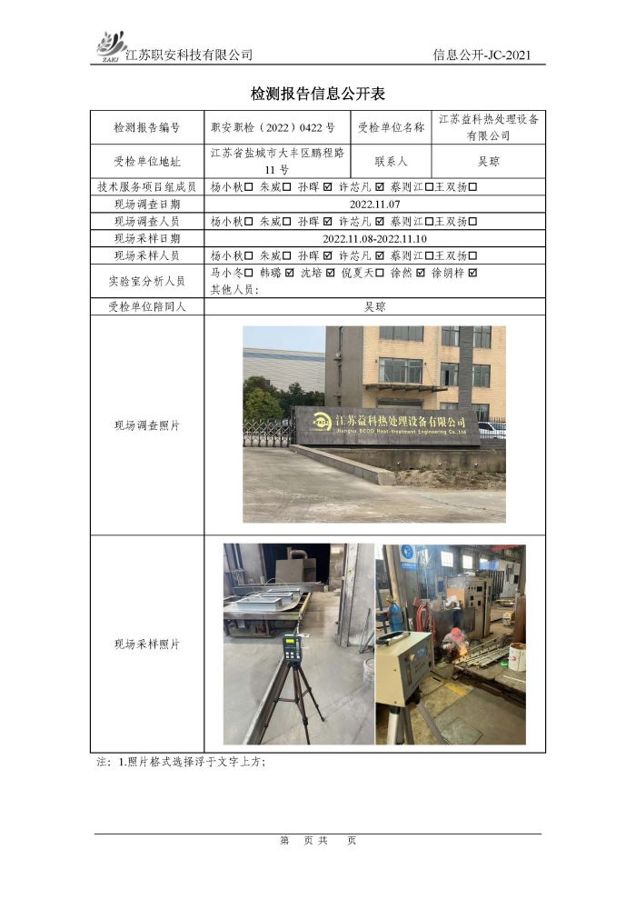 檢測報告公示
