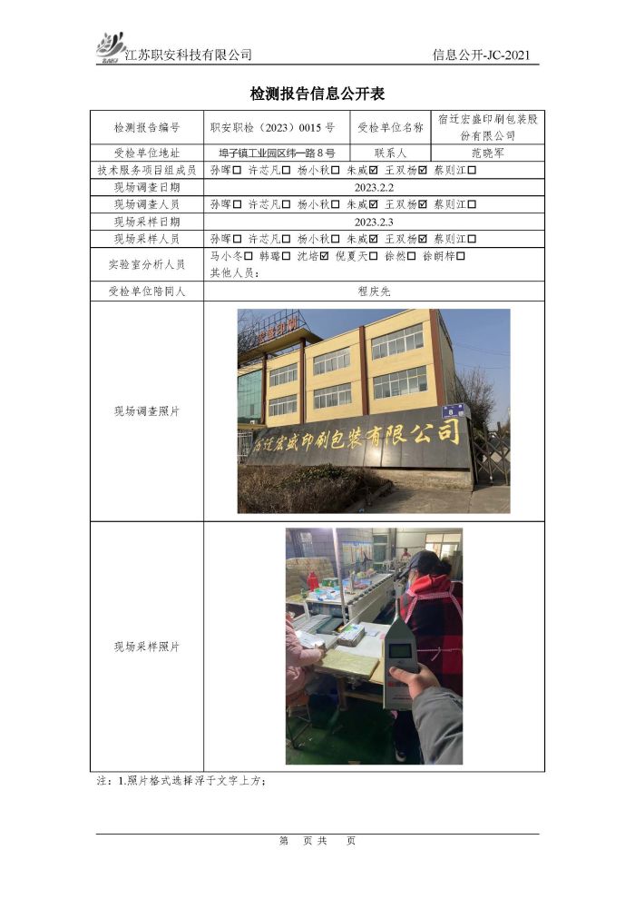 檢測報告公示