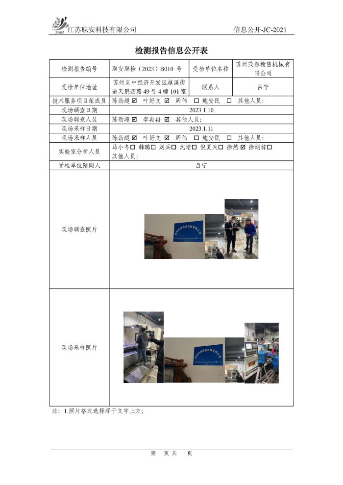 檢測報告公示