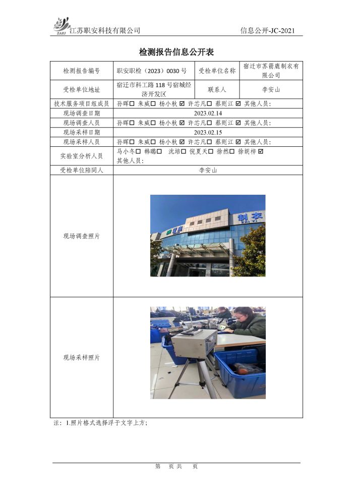 檢測報告公示