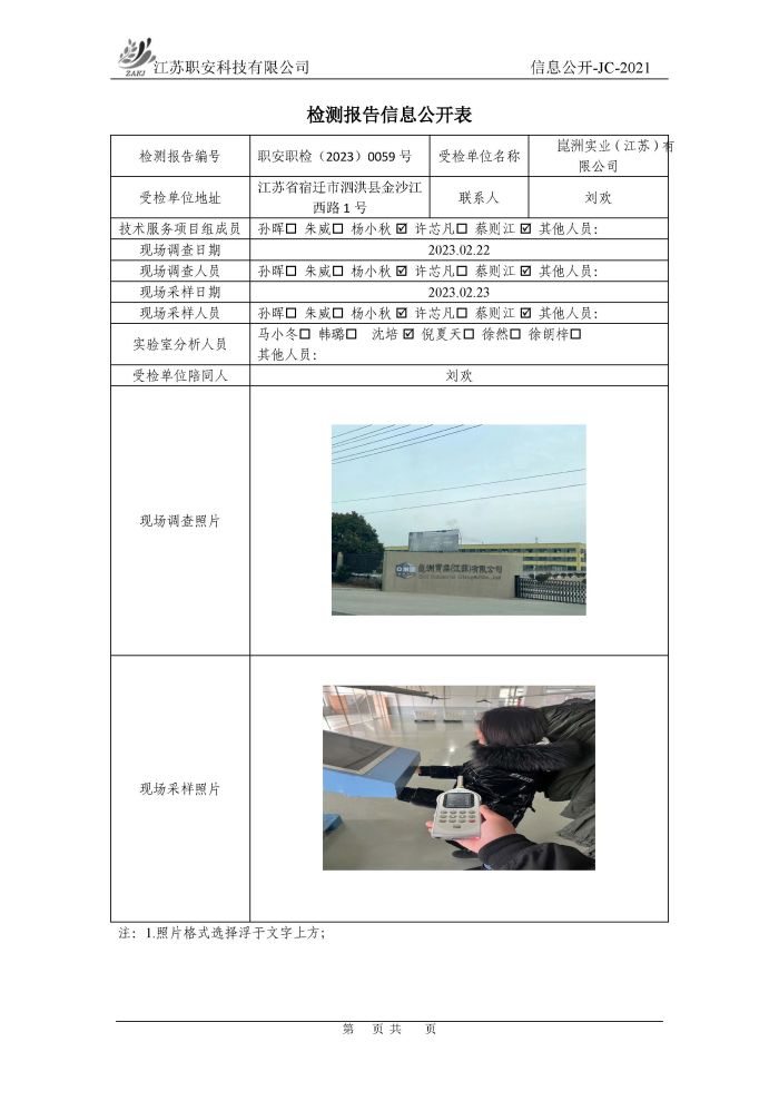 檢測報告公示