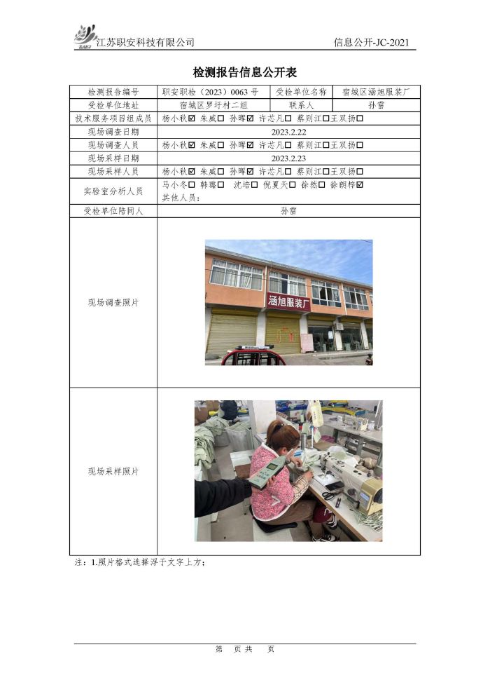 檢測報告公示