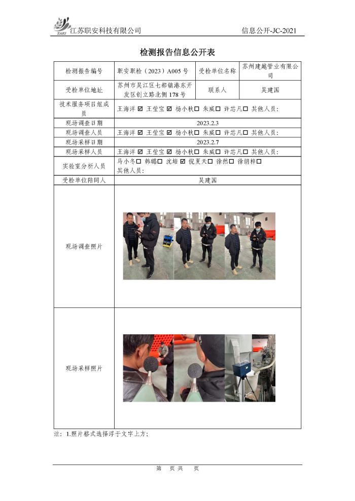 檢測報告公示