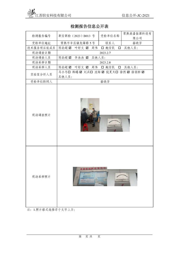 檢測報告公示