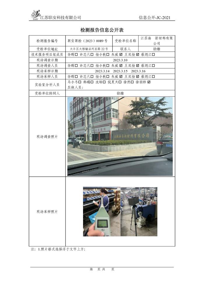 檢測報告公示