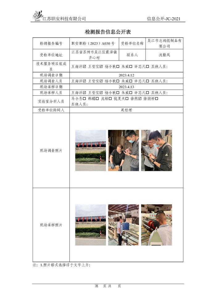 檢測報告公示