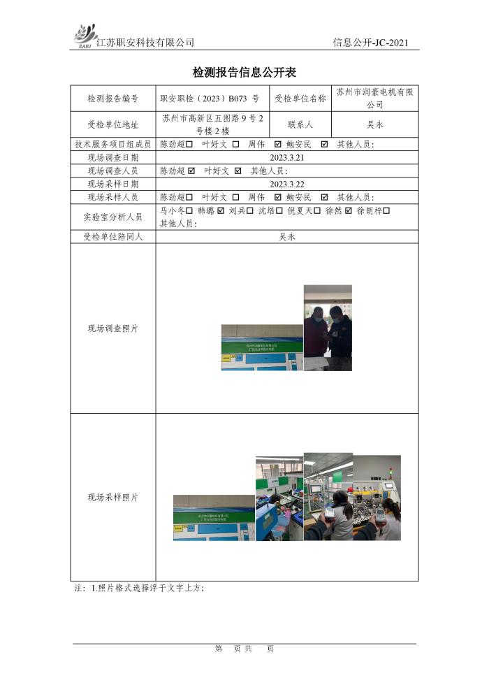 檢測報告公示
