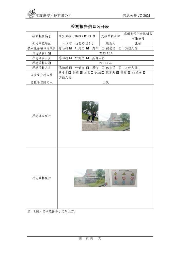檢測報告公示