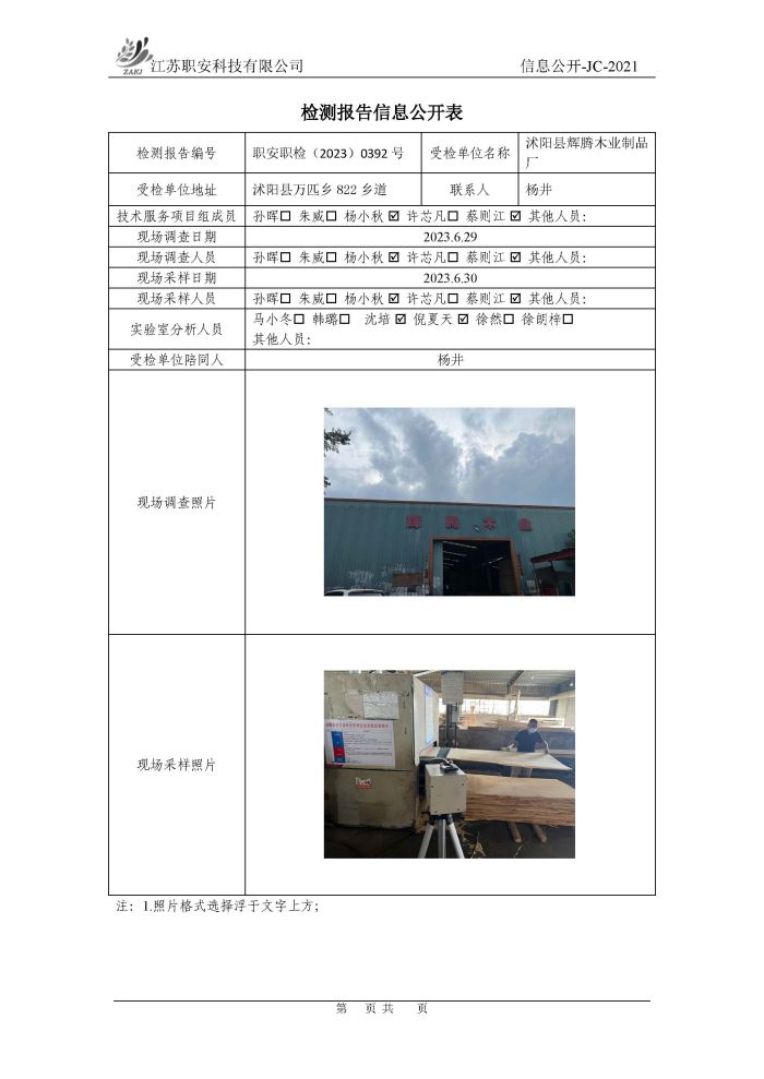 檢測報告公示