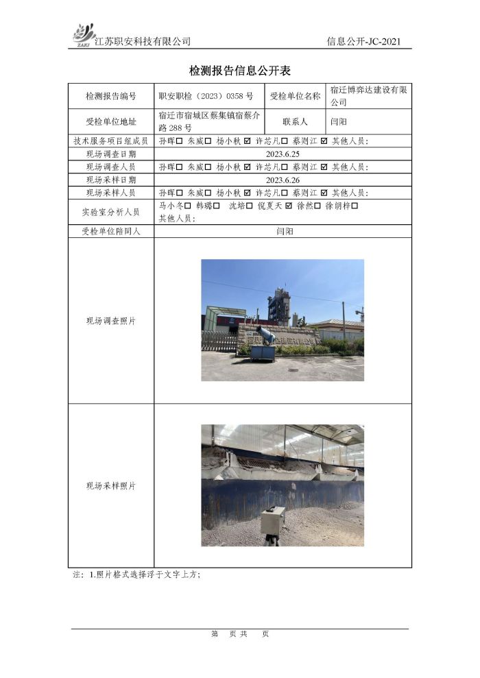 檢測報告公示
