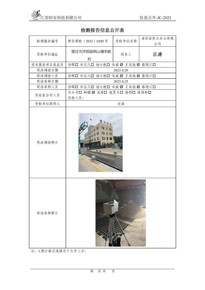 檢測報告公示
