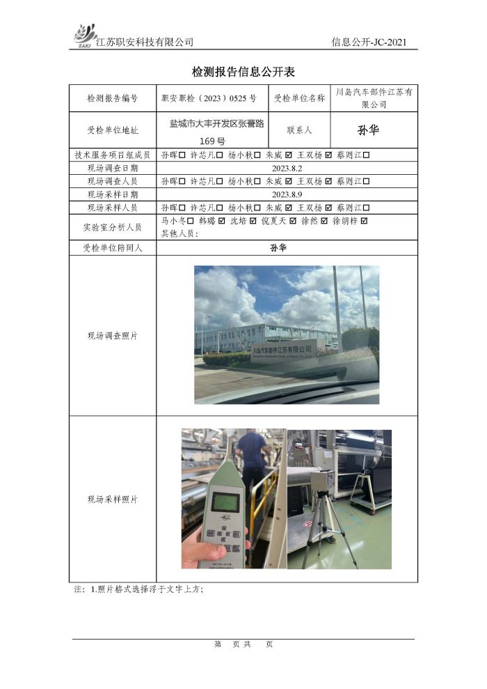 檢測報告公示