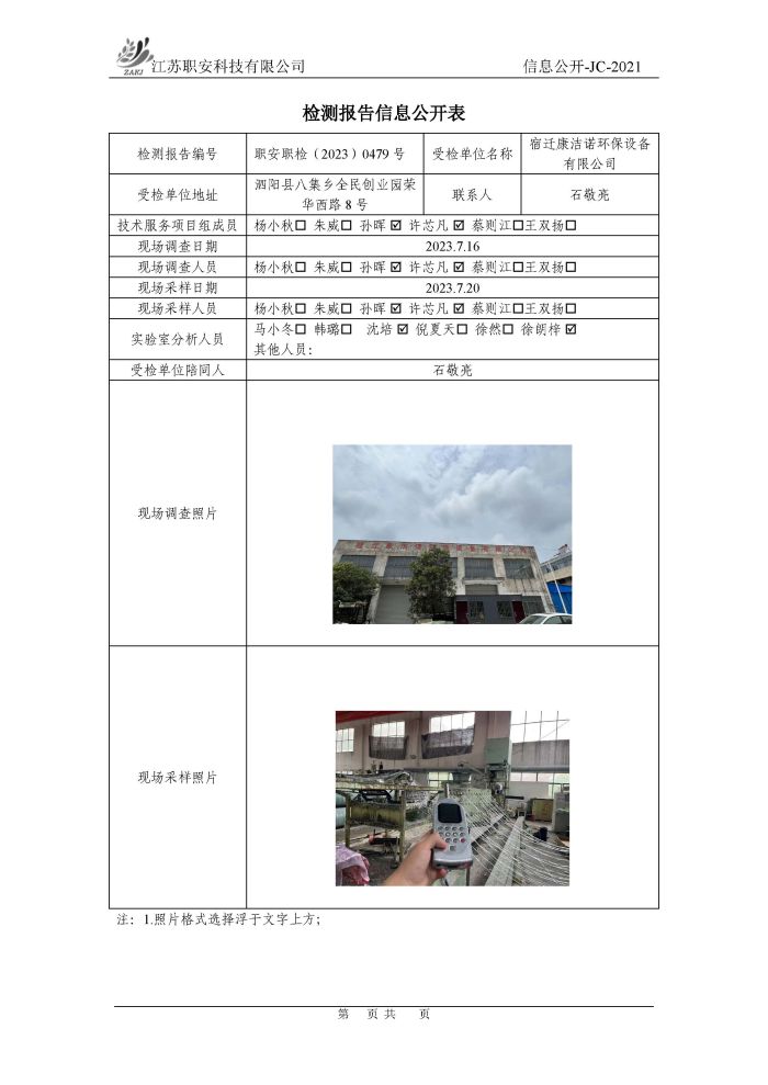 檢測報告公示
