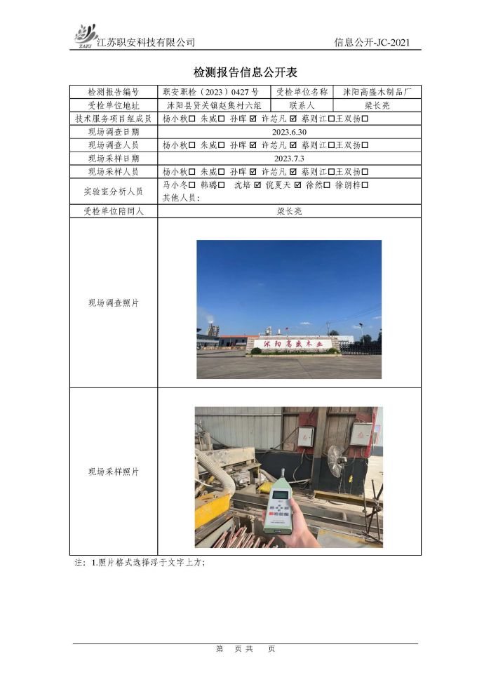 檢測報告公示