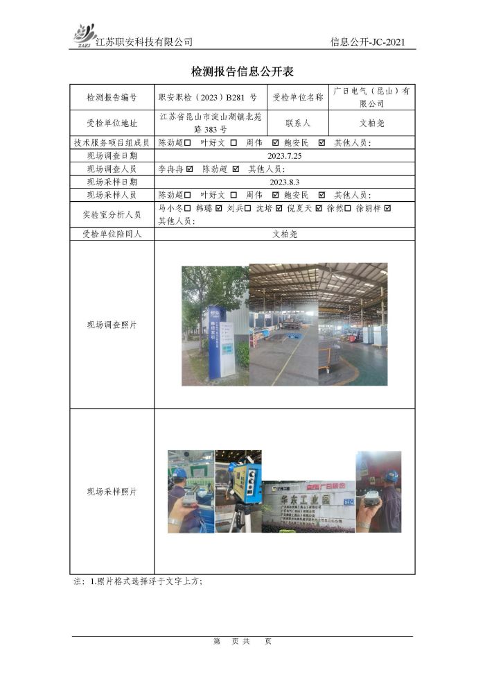 檢測報告公示