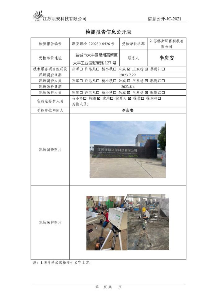 檢測報告公示