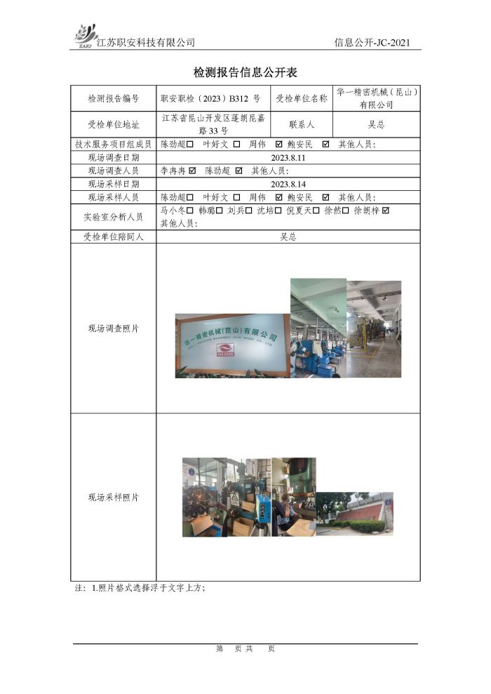 檢測報告公示