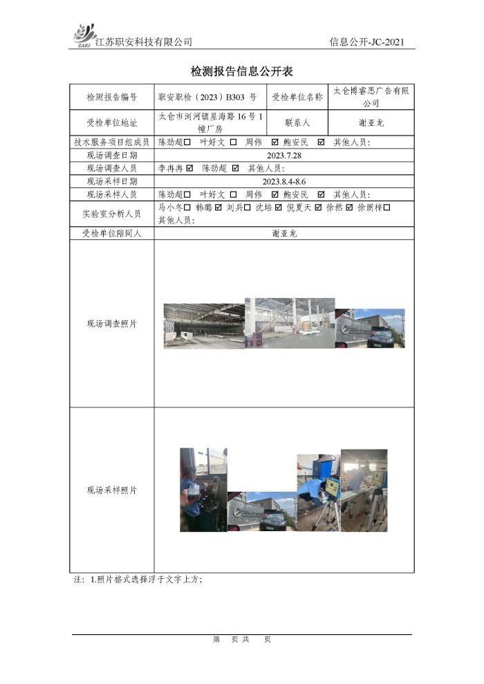 檢測報告公示