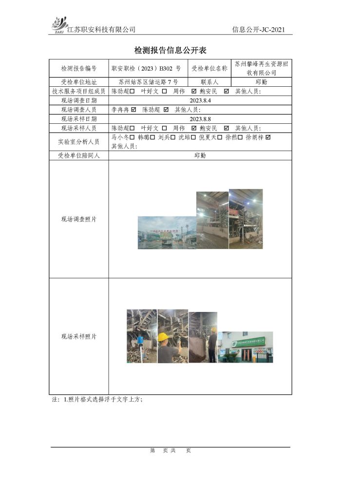 檢測報告公示
