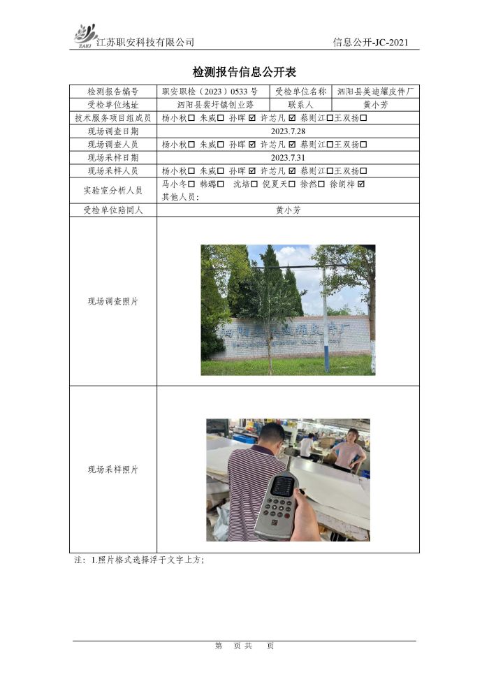檢測報告公示