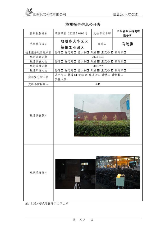 檢測報告公示