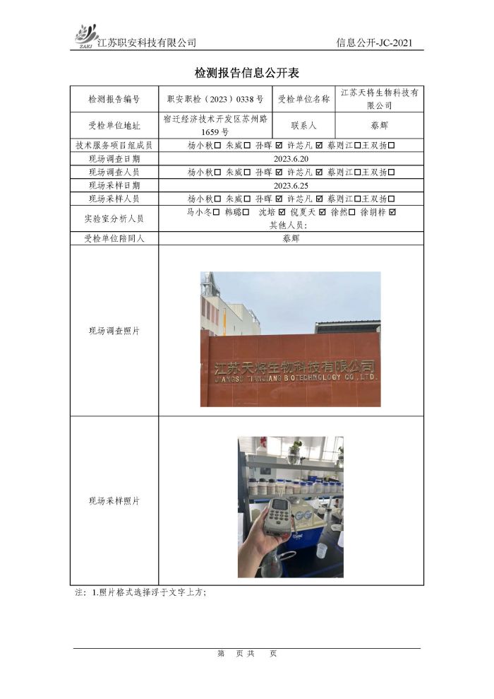檢測報告公示