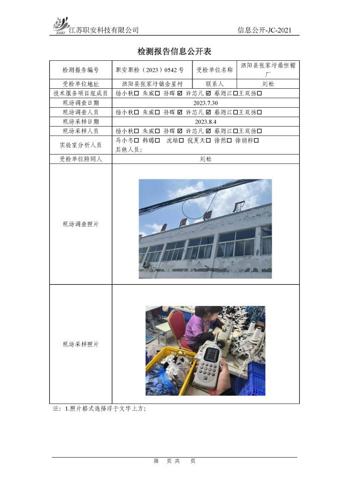 檢測報告公示