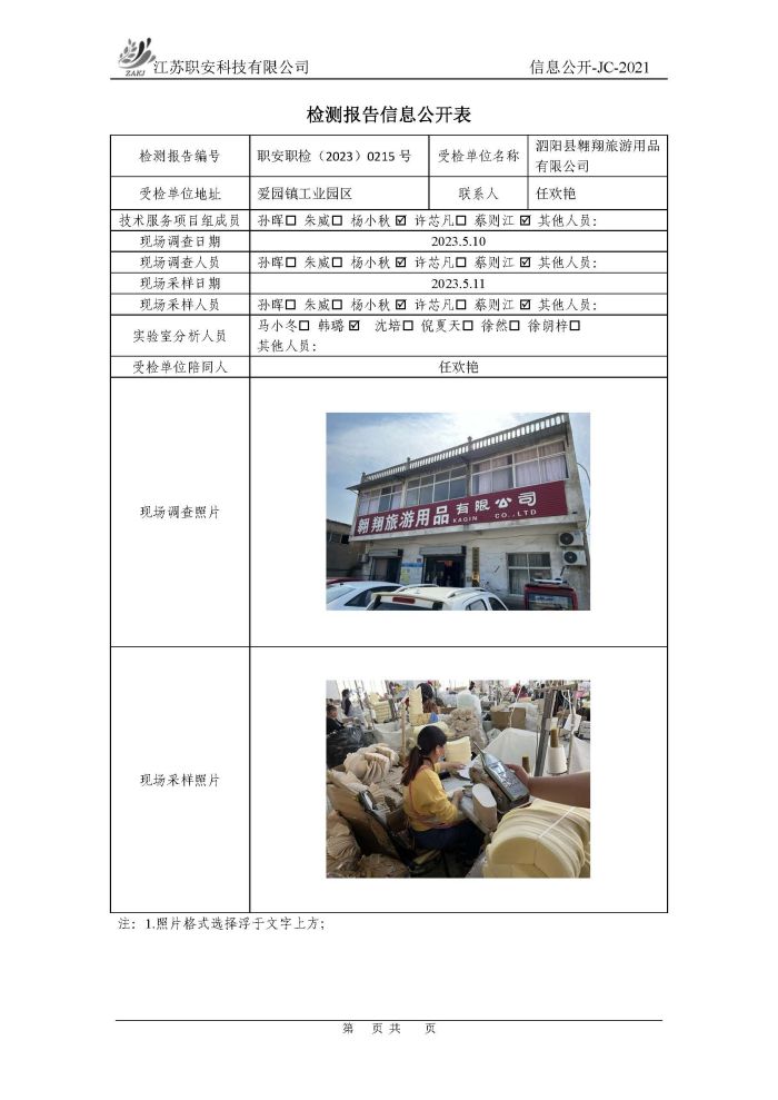 檢測報告公示