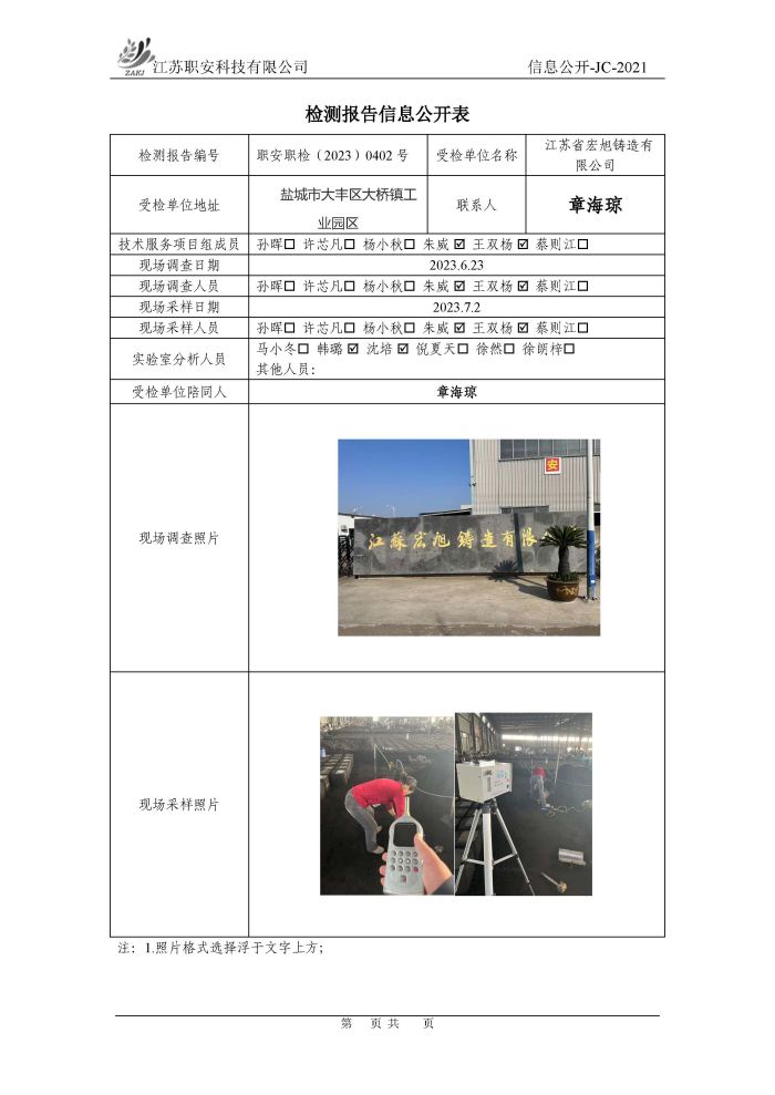 檢測報告公示