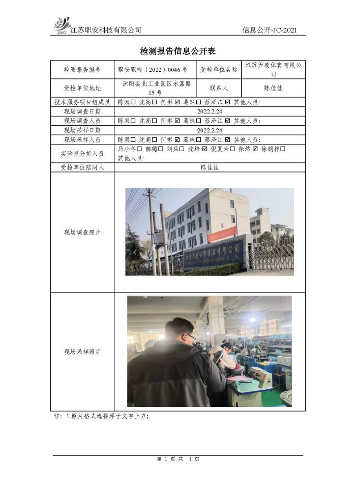 檢測報告公示