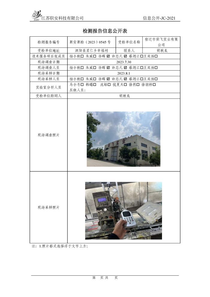 檢測報告公示
