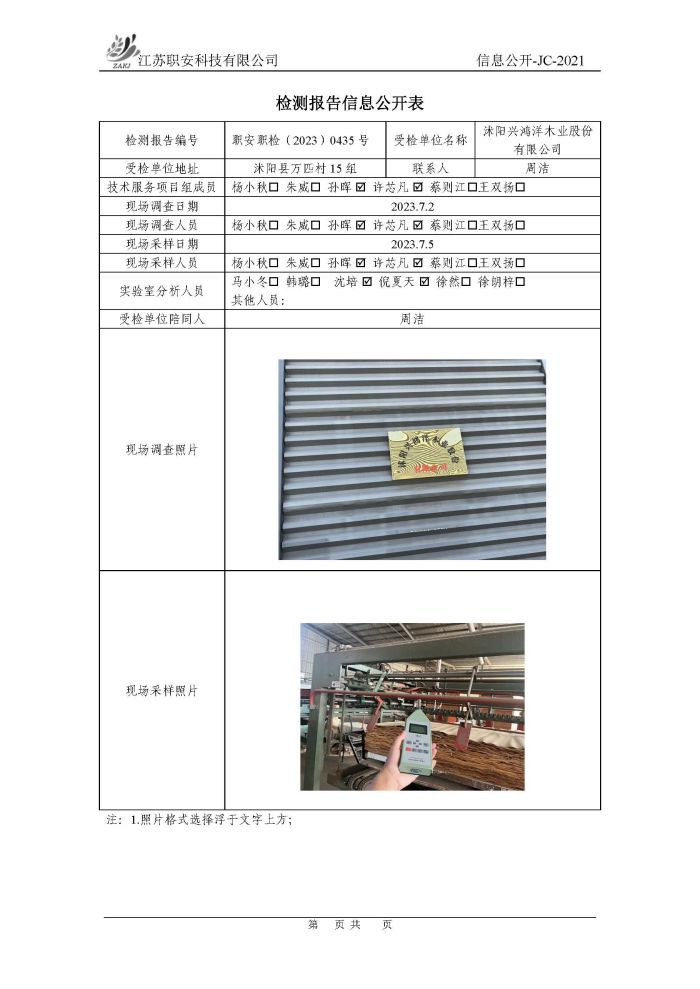 檢測報告公示