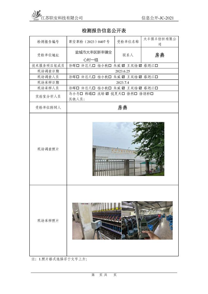 檢測報告公示
