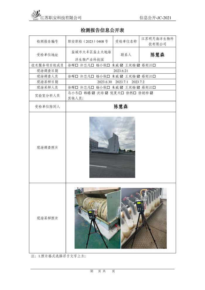 檢測報告公示