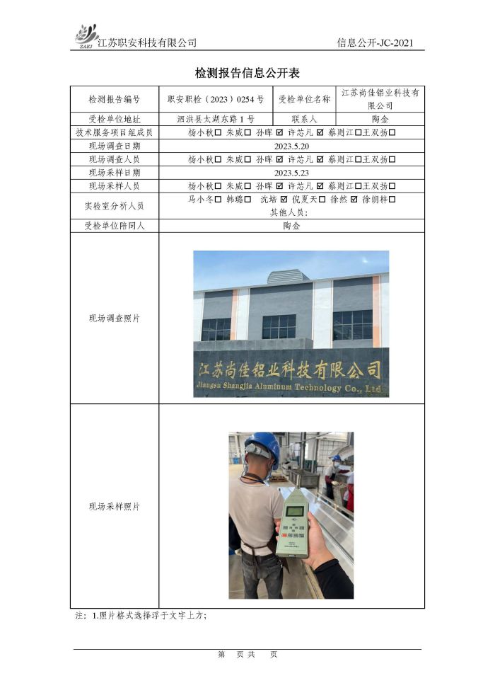 檢測報告公示