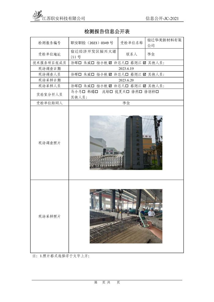 檢測報告公示