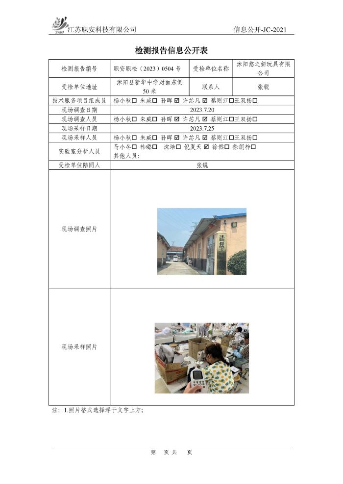 檢測報告公示