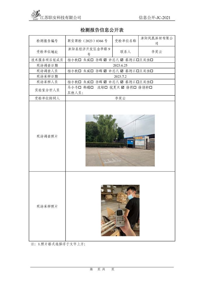 檢測報告公示