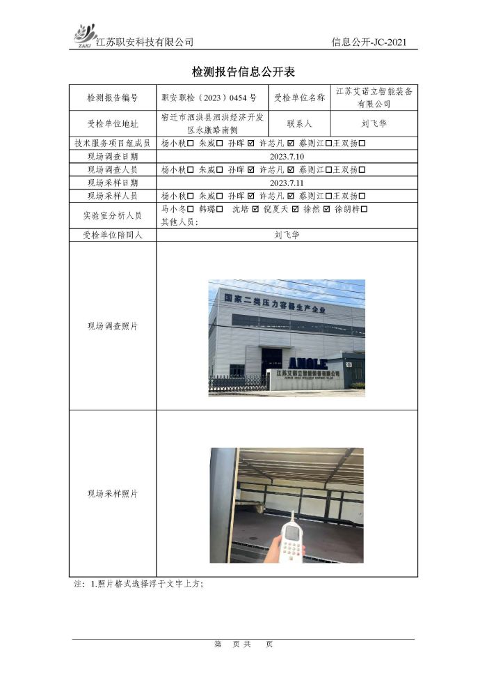 檢測報告公示