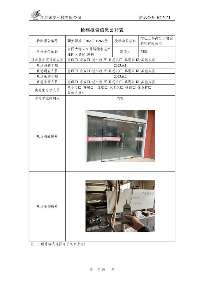 檢測報告公示