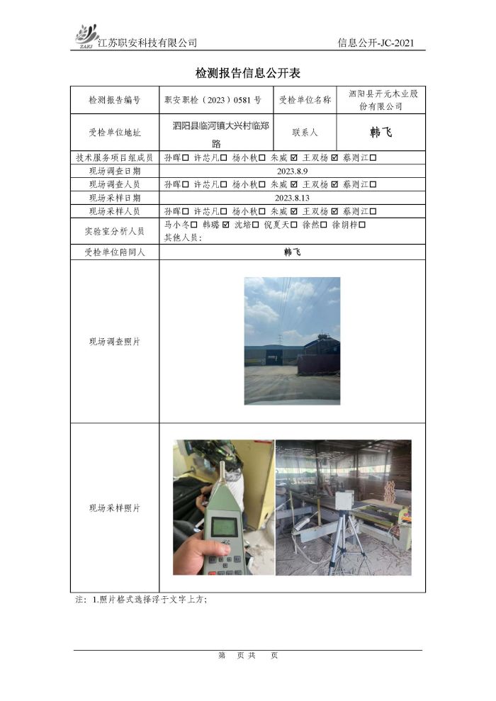 檢測報告公示