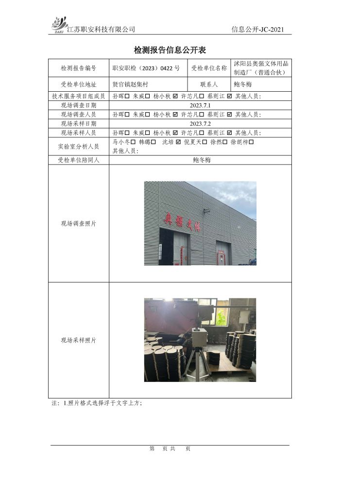 檢測報告公示